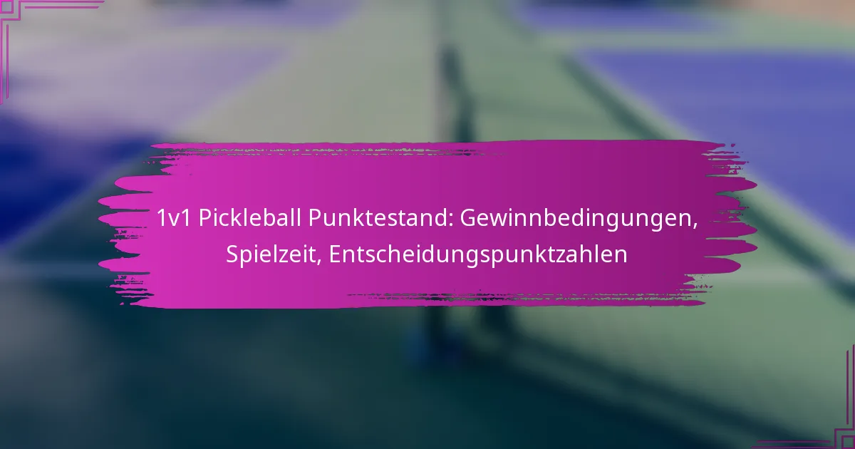 Im 1v1-Pickleball drehen sich die Gewinnbedingungen hauptsächlich um das Erzielen von Punkten, um eine vorgegebene Gesamtpunktzahl zu erreichen, typischerweise 11 oder 15, während ein Vorsprung von mindestens zwei Punkten sichergestellt werden muss. Die Spieler können entweder durch traditionelle Punktzählung oder Rally-Punktzählung gewinnen, wobei jede Methode die Dynamik und Strategien des Spiels beeinflusst.